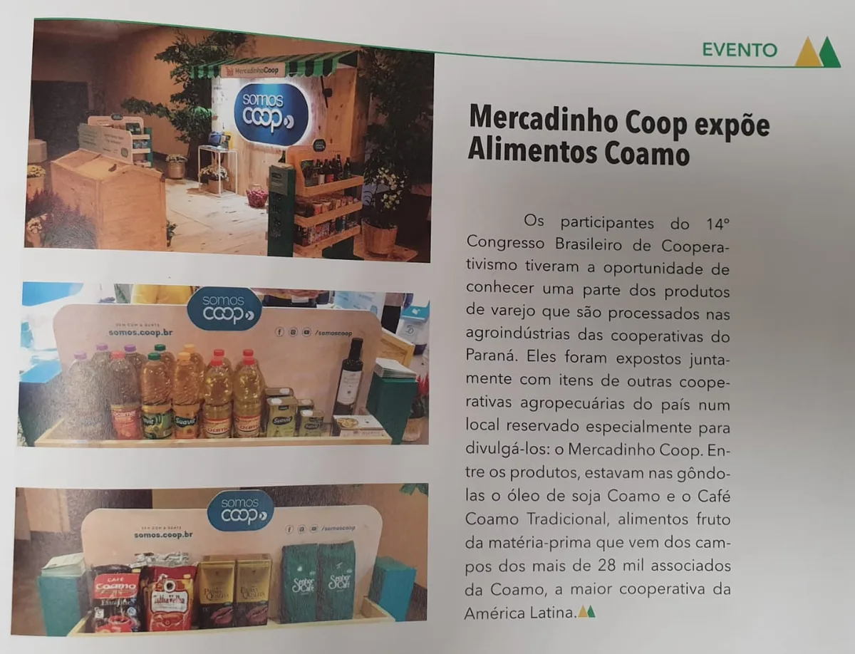 Quem participou do Congresso, pode conhecer diversos produtos de cooperativas brasileiras, que foram expostos num local especial como já vimos aqui no Blog: o Mercadinho Coop. Entre os produtos, estavam o óleo de soja Coamo e o Café Coamo Tradicional, alimentos fruto da matéria-prima que vem dos campos dos mais de 28 mil associados da Coamo, a maior cooperativa da América Latina.